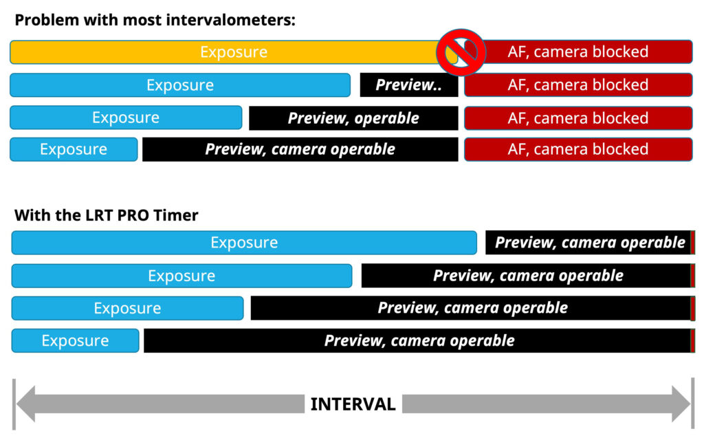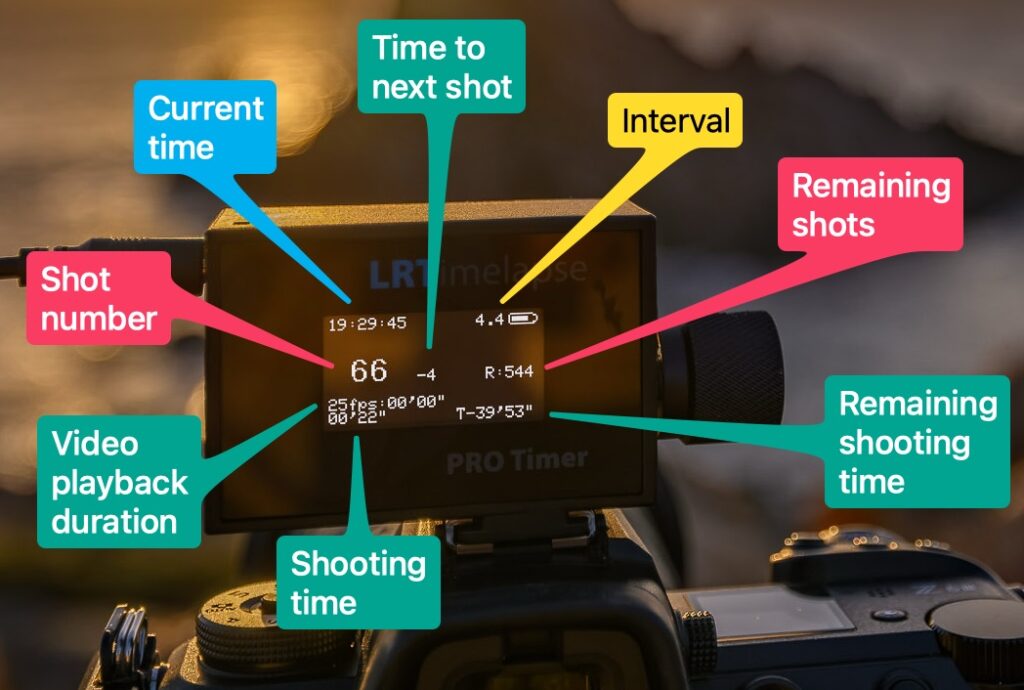 - The LRT PRO Timer has a battery powered real time clock which enables scheduled timelapse shots.
